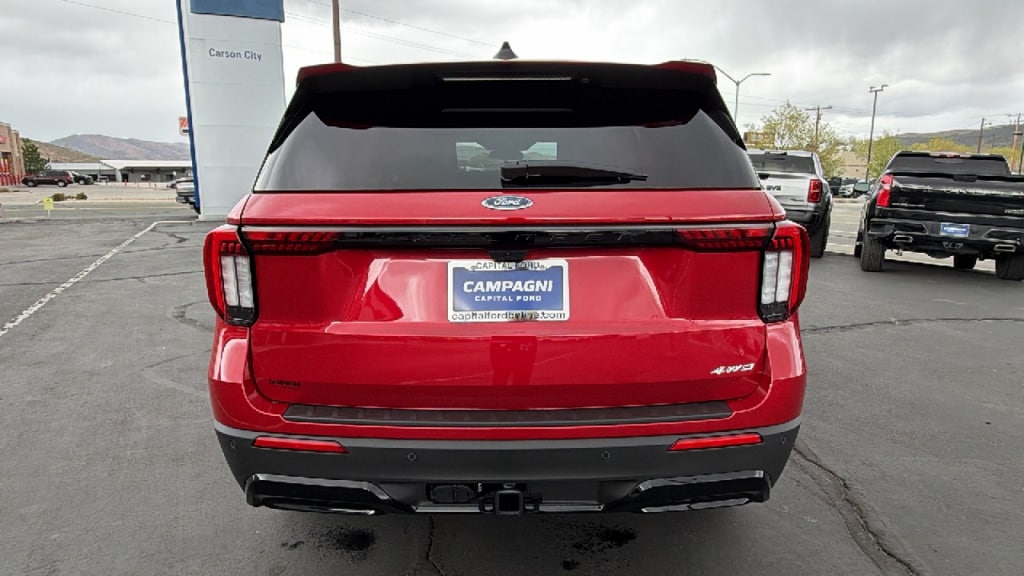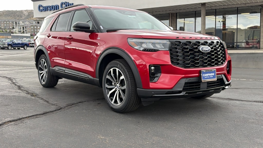 With only 0 miles, this model provides an impressive 20/27 MPG city/highway. If youâre looking for power, this Ford EXPLORER 4DR 4WD ST-LINE has it. You can find a 4 Cylinder Engine engine paired with a Transmission: 10-Speed Automatic transmission. Technology options includes: Integrated Navigation System w/Voice Activation, 2 LCD Monitors In The Front, MP3 Capability, Radio w/Seek-Scan, Clock, Steering Wheel Controls, External Memory Control and Internal Memory, Satellite Radio. Options for Ford EXPLORER 4DR 4WD ST-LINE: Rapid Red Metallic Tinted Clearcoat exterior, Onyx interior. 2 Seatback Storage Pockets, Driver Seat, Fade-To-Off Interior Lighting, Fixed 50-50 Bench 3rd Row Seat Front, Manual Fold Into Floor, 2 Manual and Adjustable Head Restraints, Front Center Armrest. Stop by Today: Visit us at Dick Campagni's Capital Ford located at 3660 S. Carson St. Carson City NV 89701 for an overview on this great model.